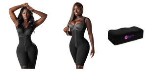 Essential pack for the first recovery stage (Stage 1). It combines two post-surgery fajas—one with a built-in bra and one without—plus the Soft BBL Pillow to help protect results, maintain your hourglass shape, and allow safe sitting when your doctor approves. Made in Colombia with high-compression Powernet and discreet finishes for a comfortable, invisible fit under clothing.